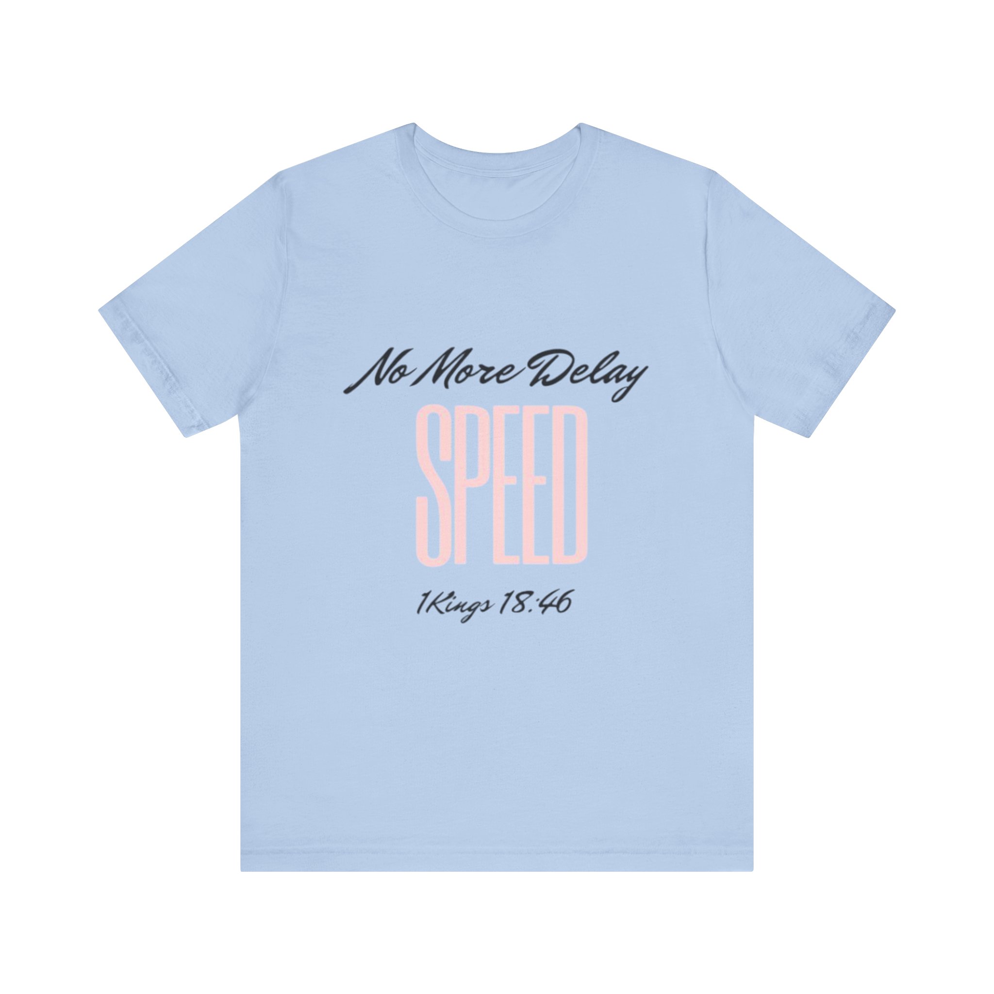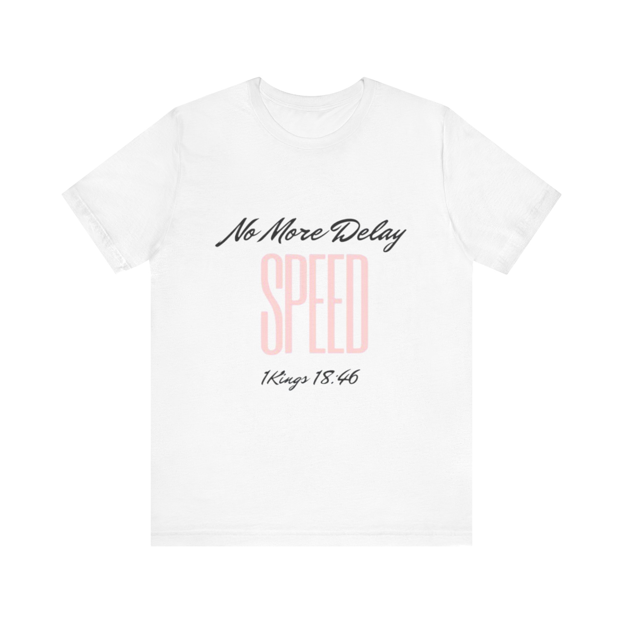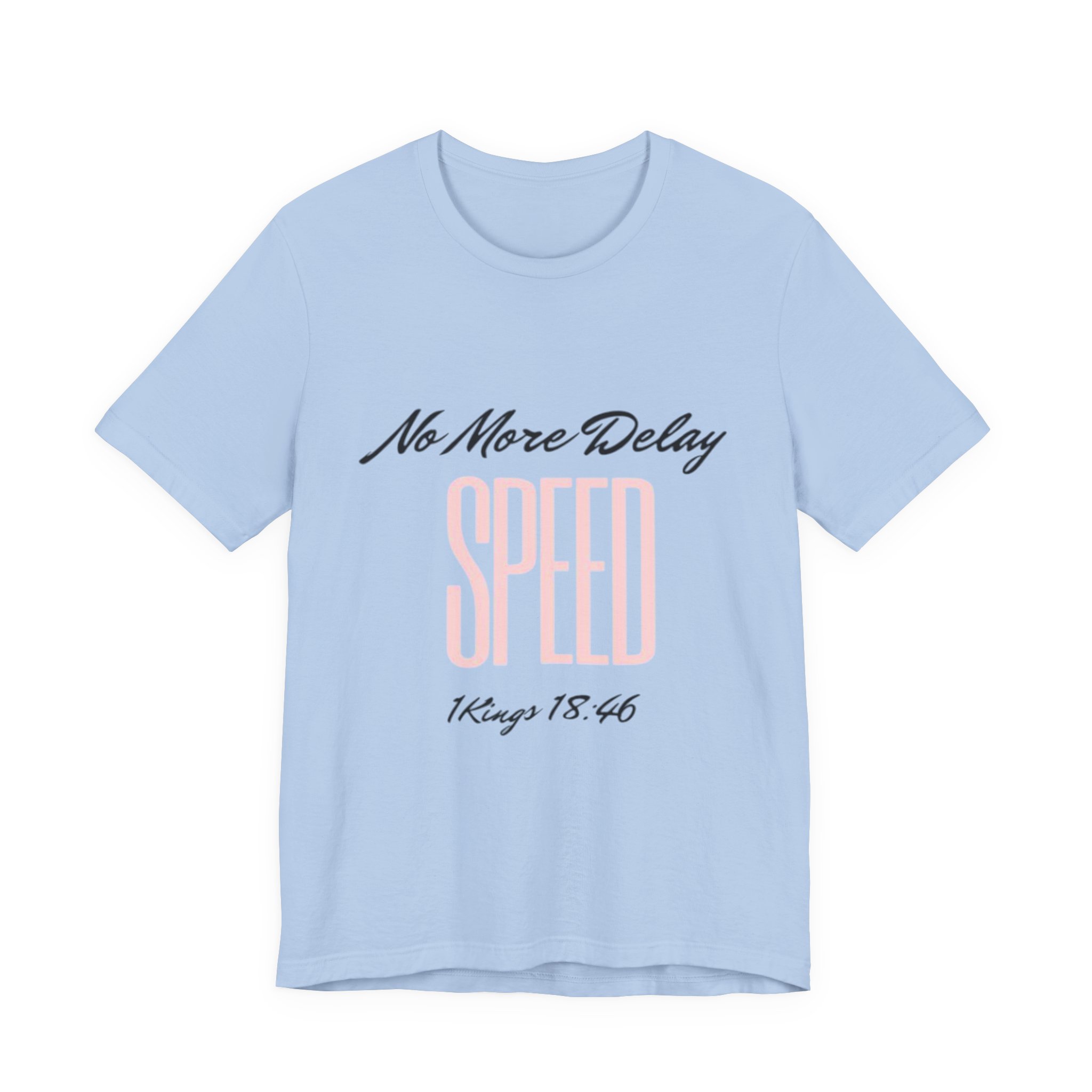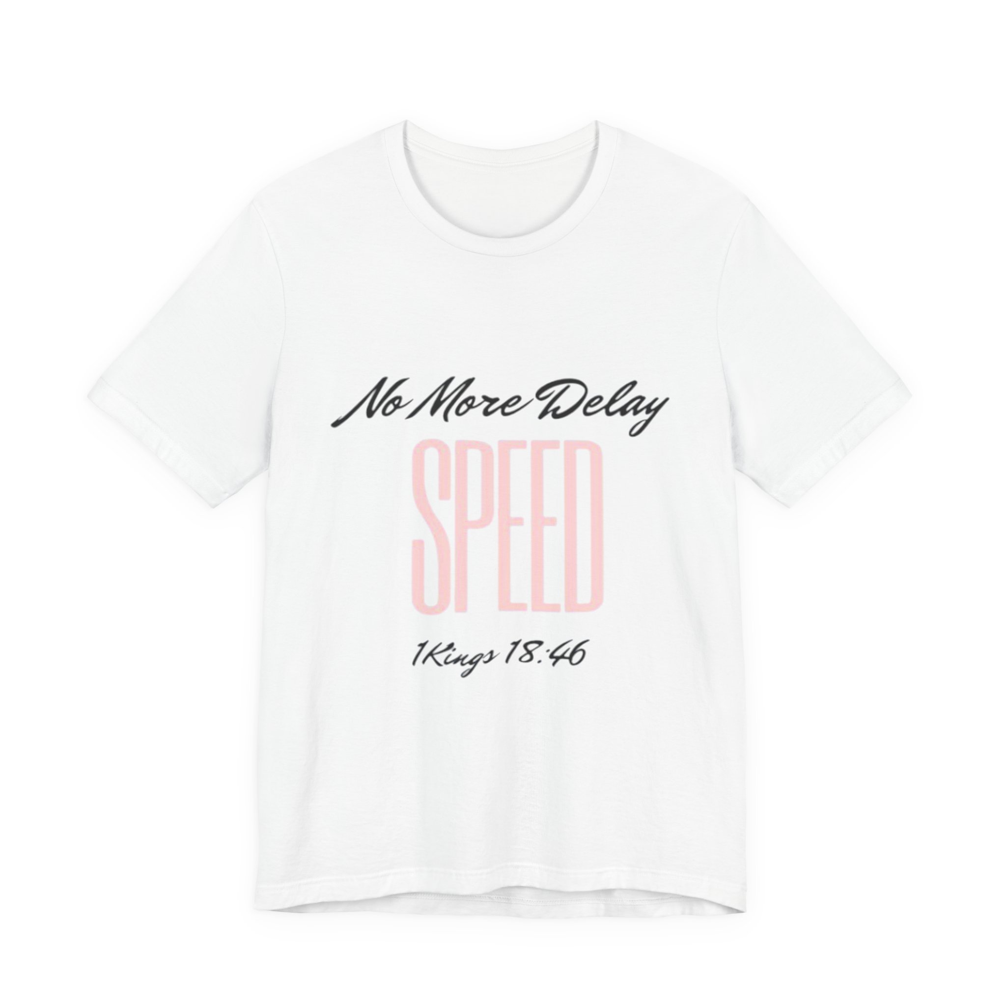 “No More Delay” is a lightweight, breathable tee that carries a quiet, steady confidence. The design—inspired by 1st Kings 18:46—speaks to decisive momentum and faith that moves forward. Wear it on a brisk morning run, layered beneath a jacket for community service work, or during group worship where bold action and calm resolve meet. The soft Airlume cotton drapes comfortably while the crisp sleeve print stays sharp, so the message reads clear without shouting. It feels like the calm before the next step — steady, ready, and quietly sure.